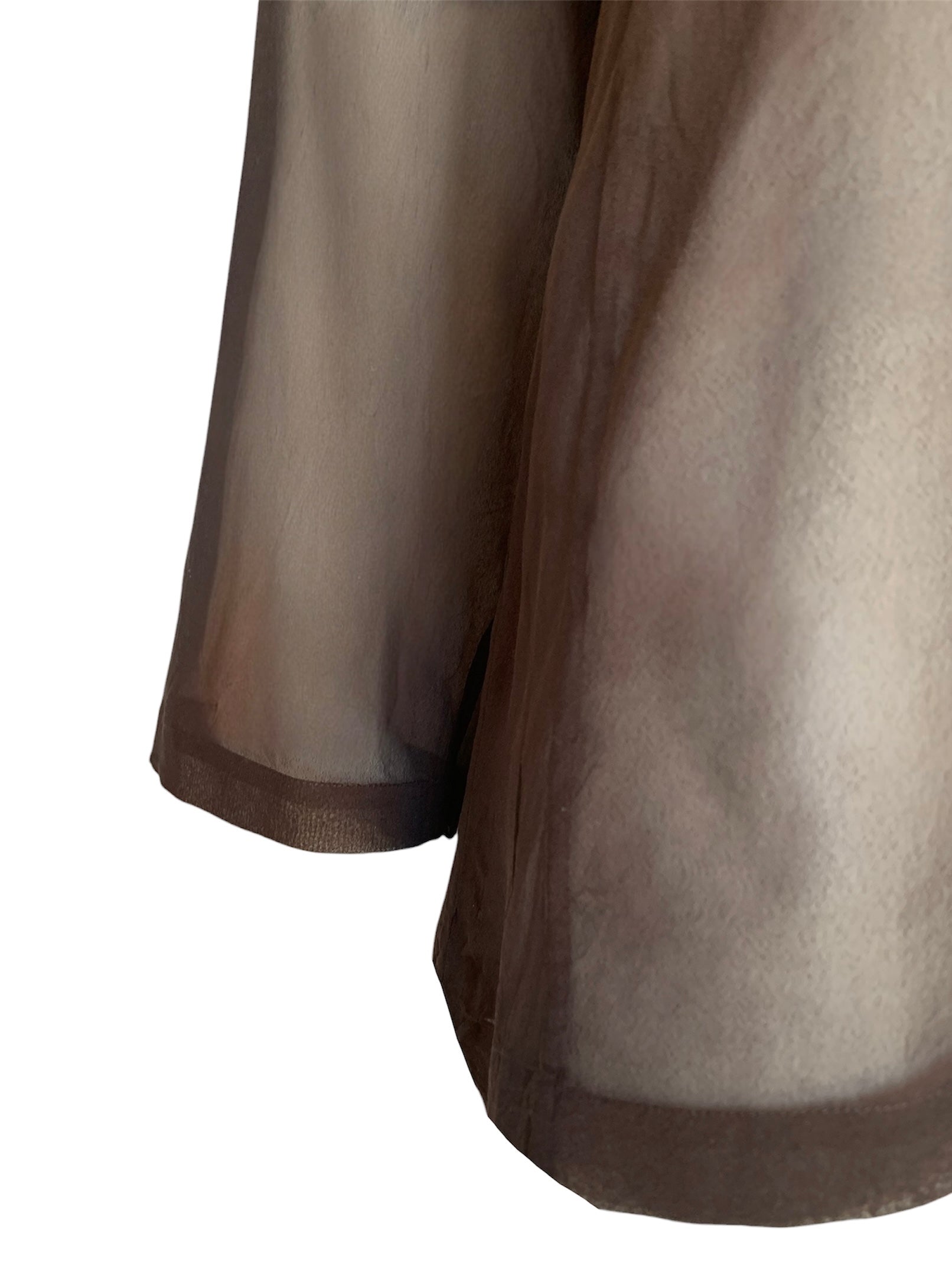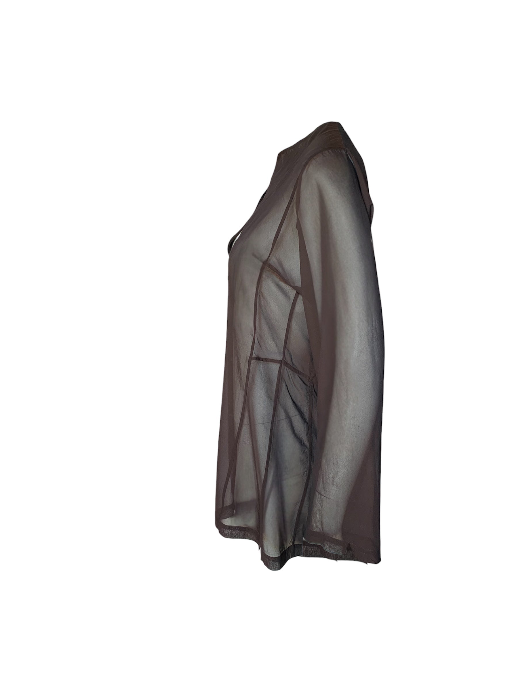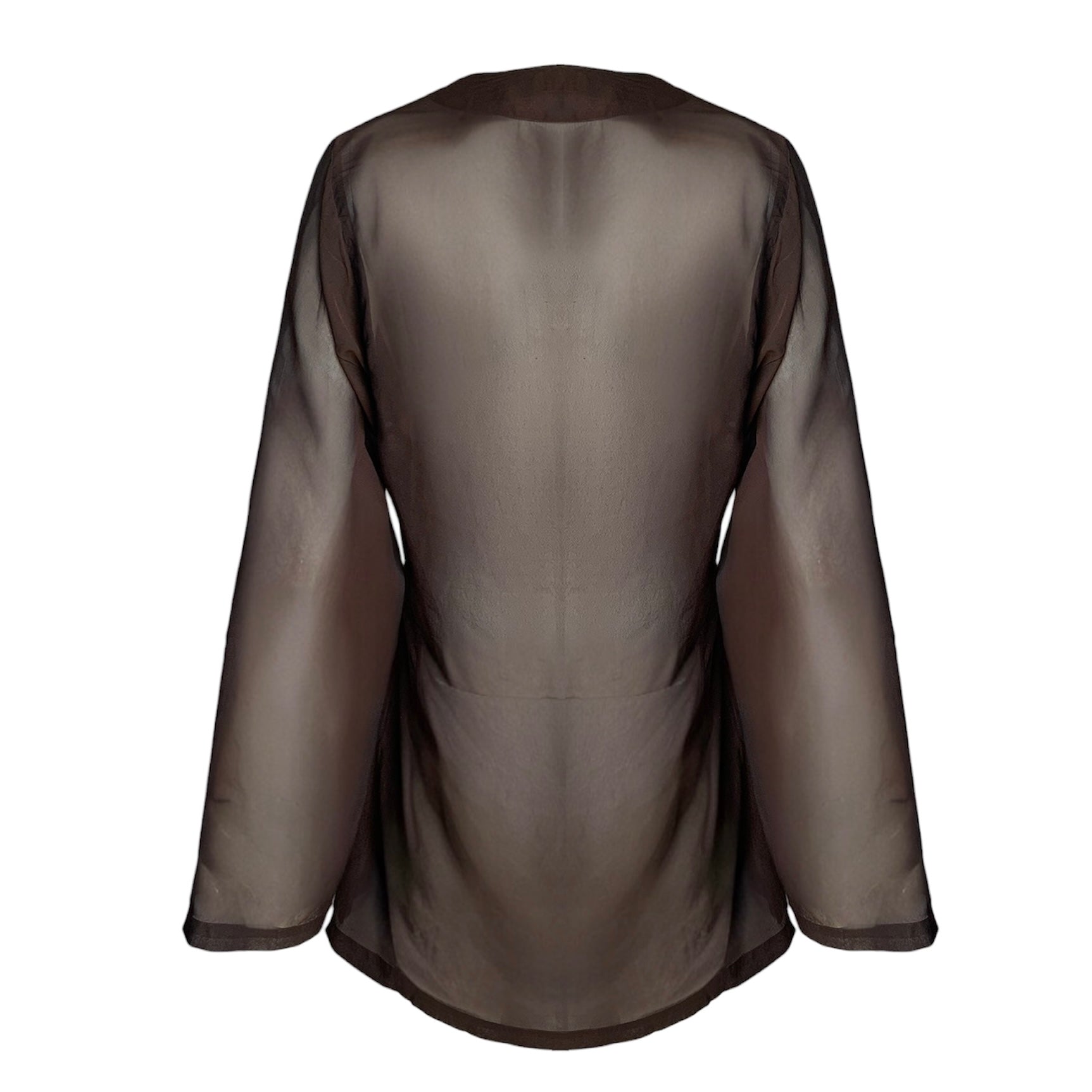 Blusa in seta trasparente con maniche lunghe e scollo a V, doppiata sullo stesso per un effetto a contrasto see-through.