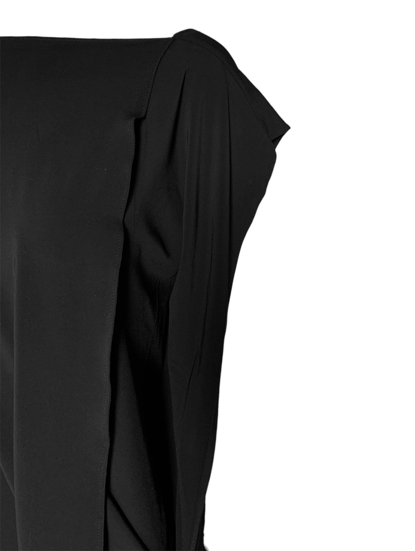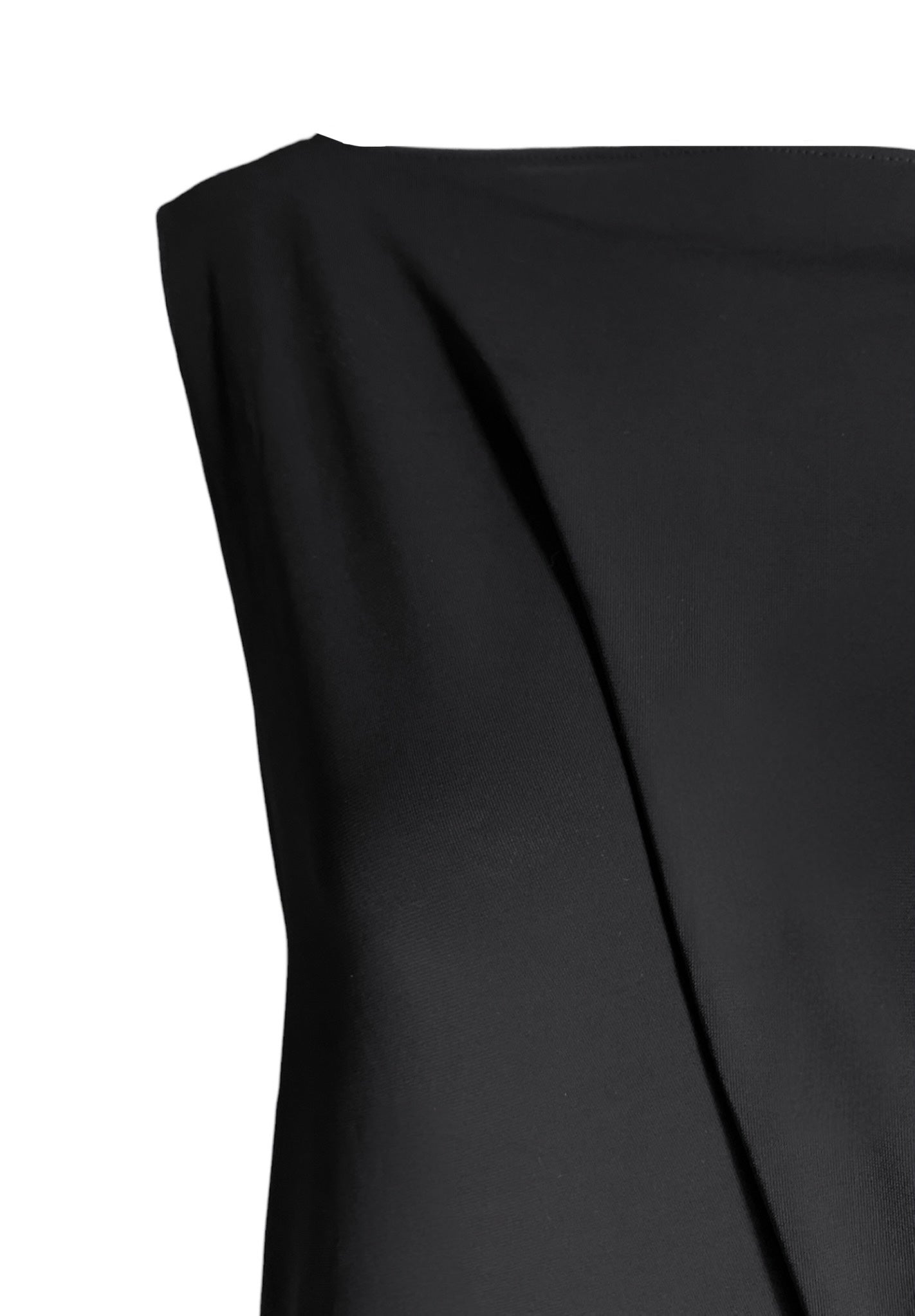 Abito senza maniche in Jersey con scollo posteriore e dettaglio di volants asimmetrici su un lato. Fascia elastica sul fondo. Sfoderato.