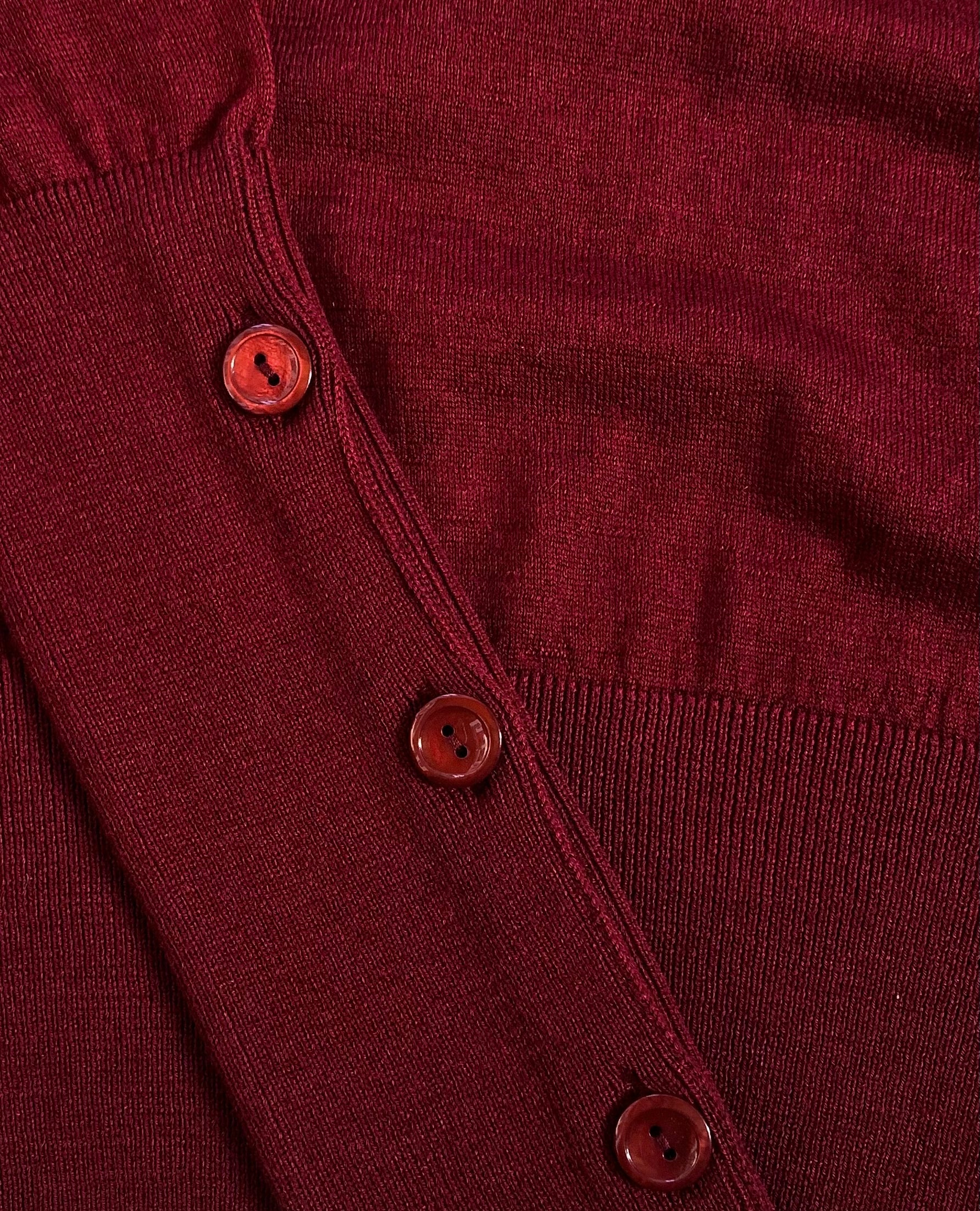 Maglia girocollo in cachemire e seta con fondo manica a coste chiuso da bottoni. Tessuto leggermente elasticizzato.