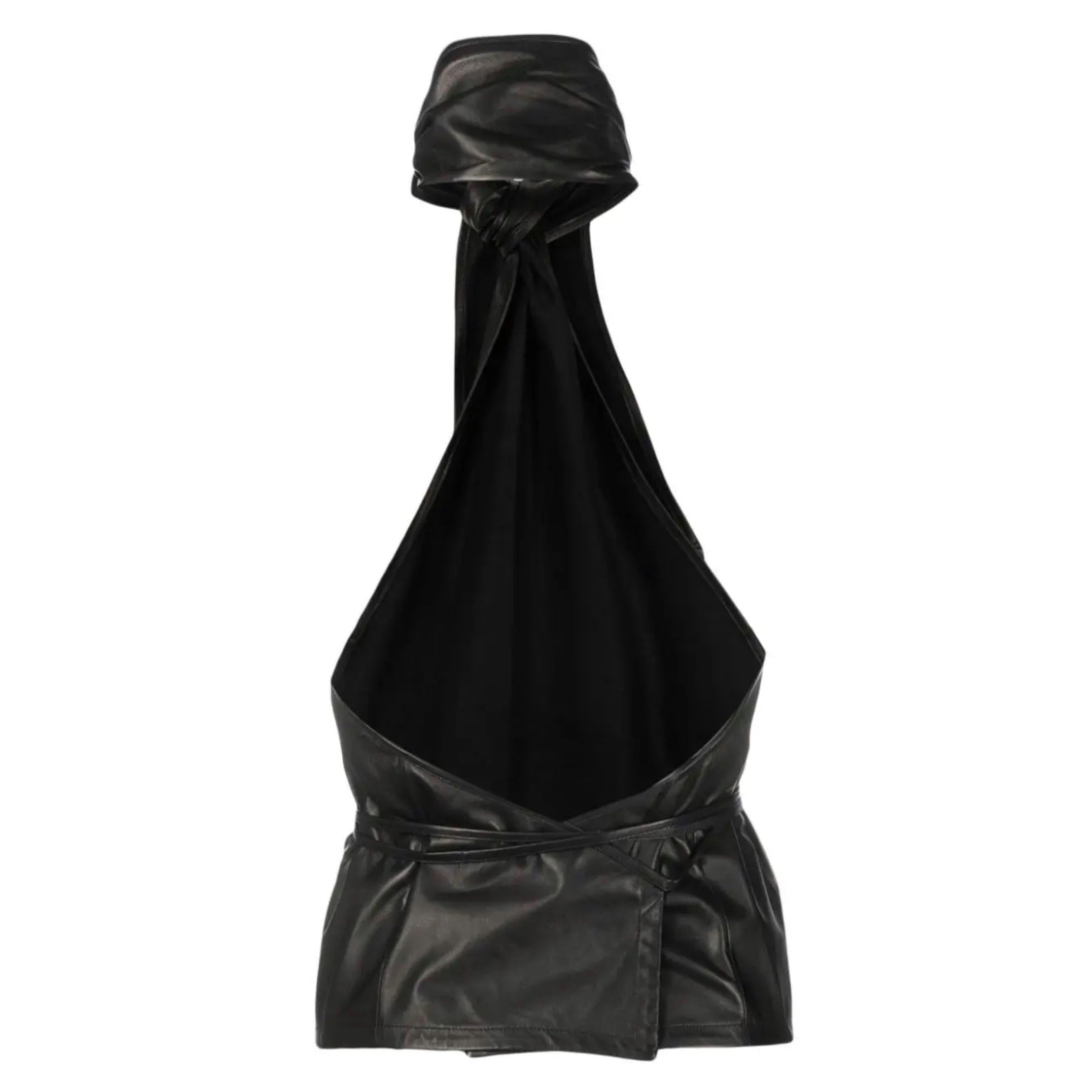 Questo top di Ann Demeulemeester è realizzato in pelle e presenta un collo all'americana, un design senza schienale, un taglio senza maniche, un orlo dritto e cinturini in vita.