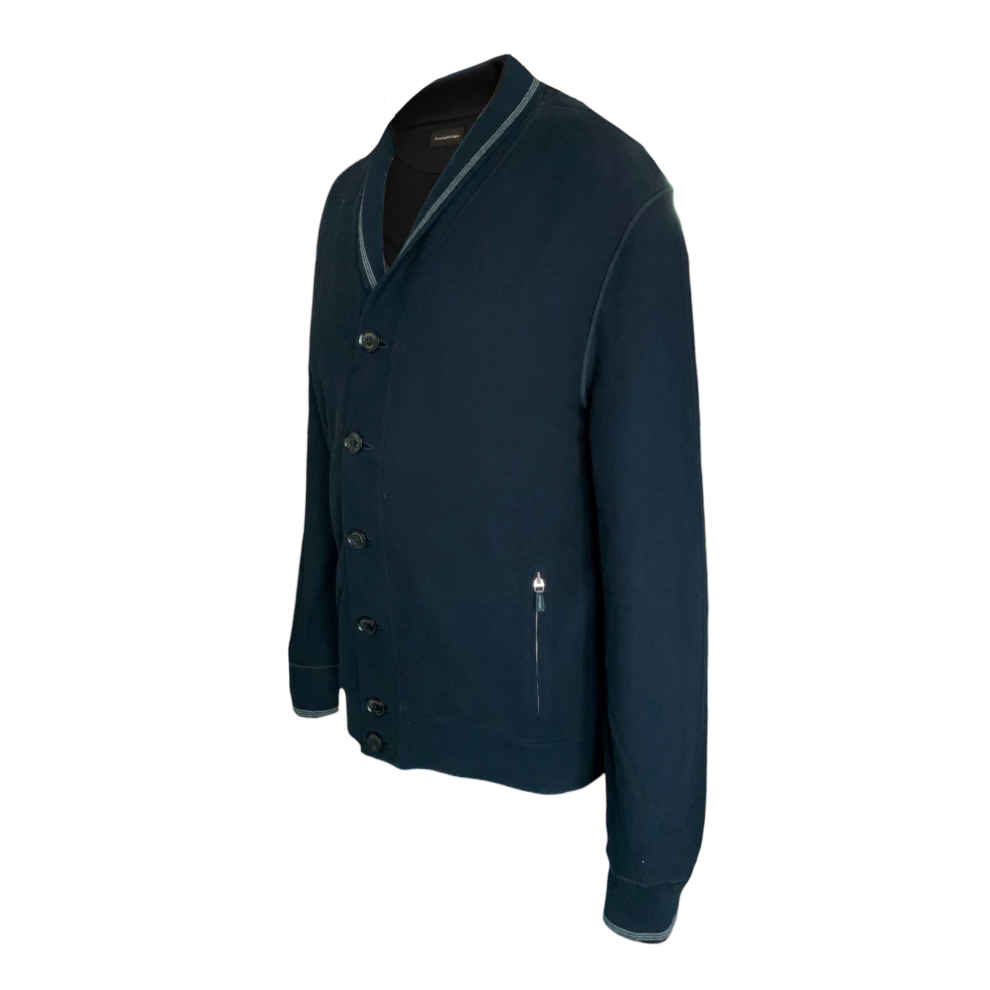 Giacca/Cardigan con scollo sciallato ed abbottonatura frontale, tasche a filetto con zip, fondo manica e fondo a coste. Parzialmente foderato.