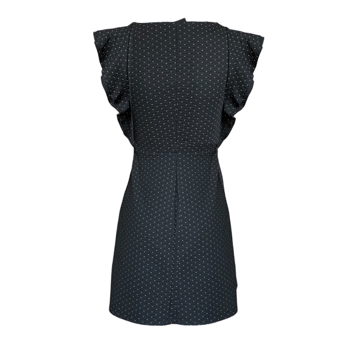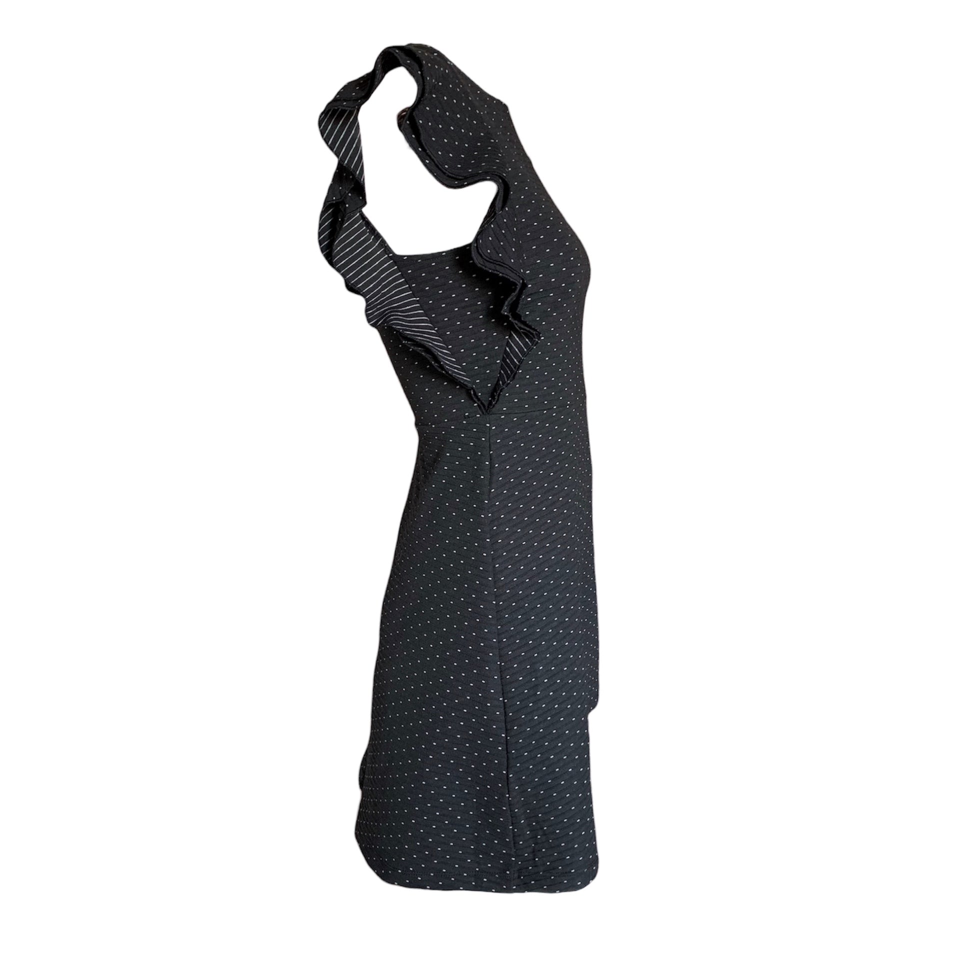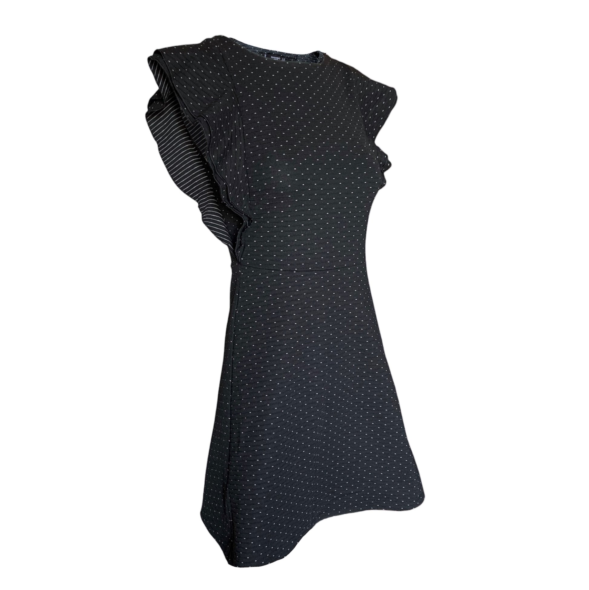 Mini abito elasticizzato senza maniche con scollo a barca e gonna tagliata ad A. Volants sulle spalle.