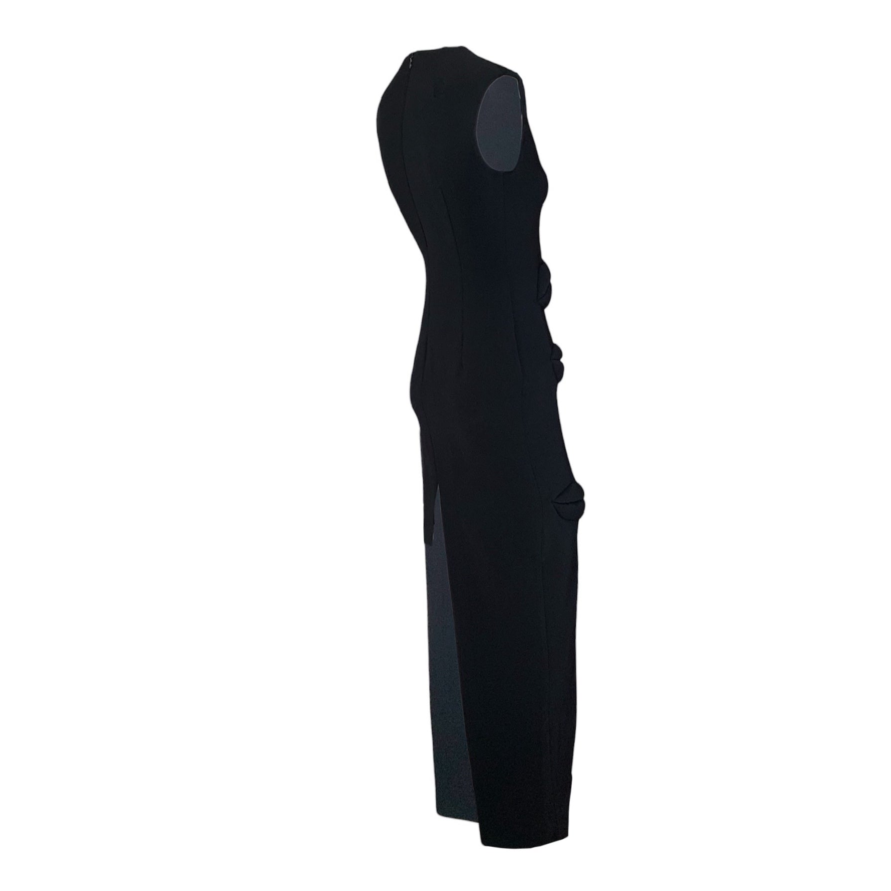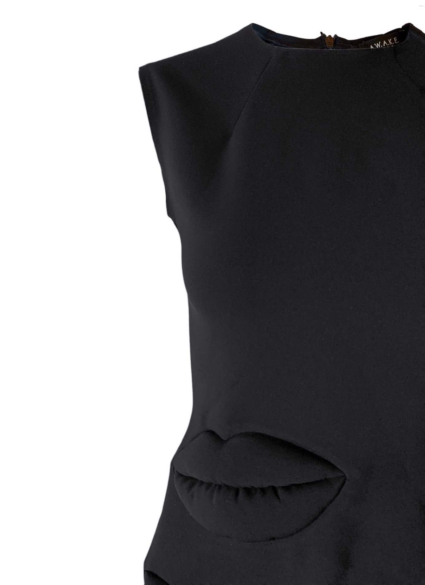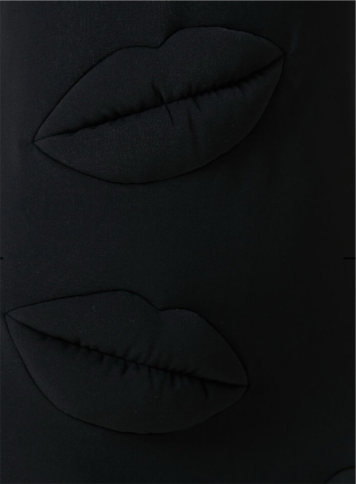 Maxi abito aderente realizzato con una silhouette lunga e sottile con molteplici decorazioni 3D di labbra sul davanti, chiusura invisibile con zip sul retro e spacco alto per una finitura elegante.