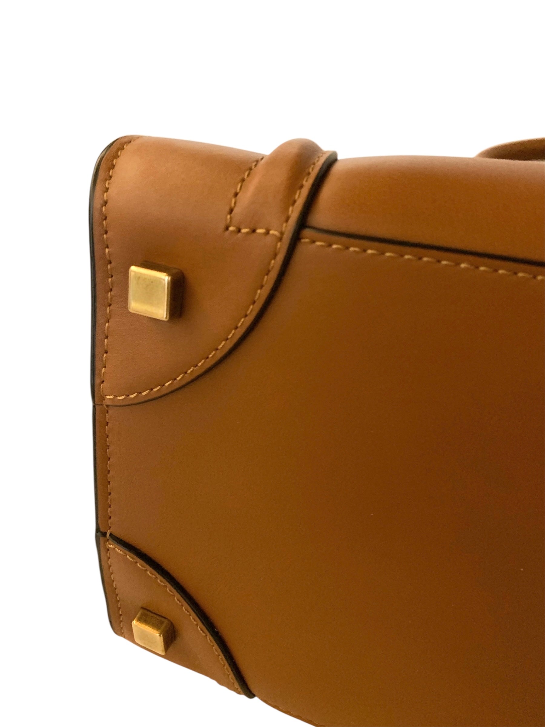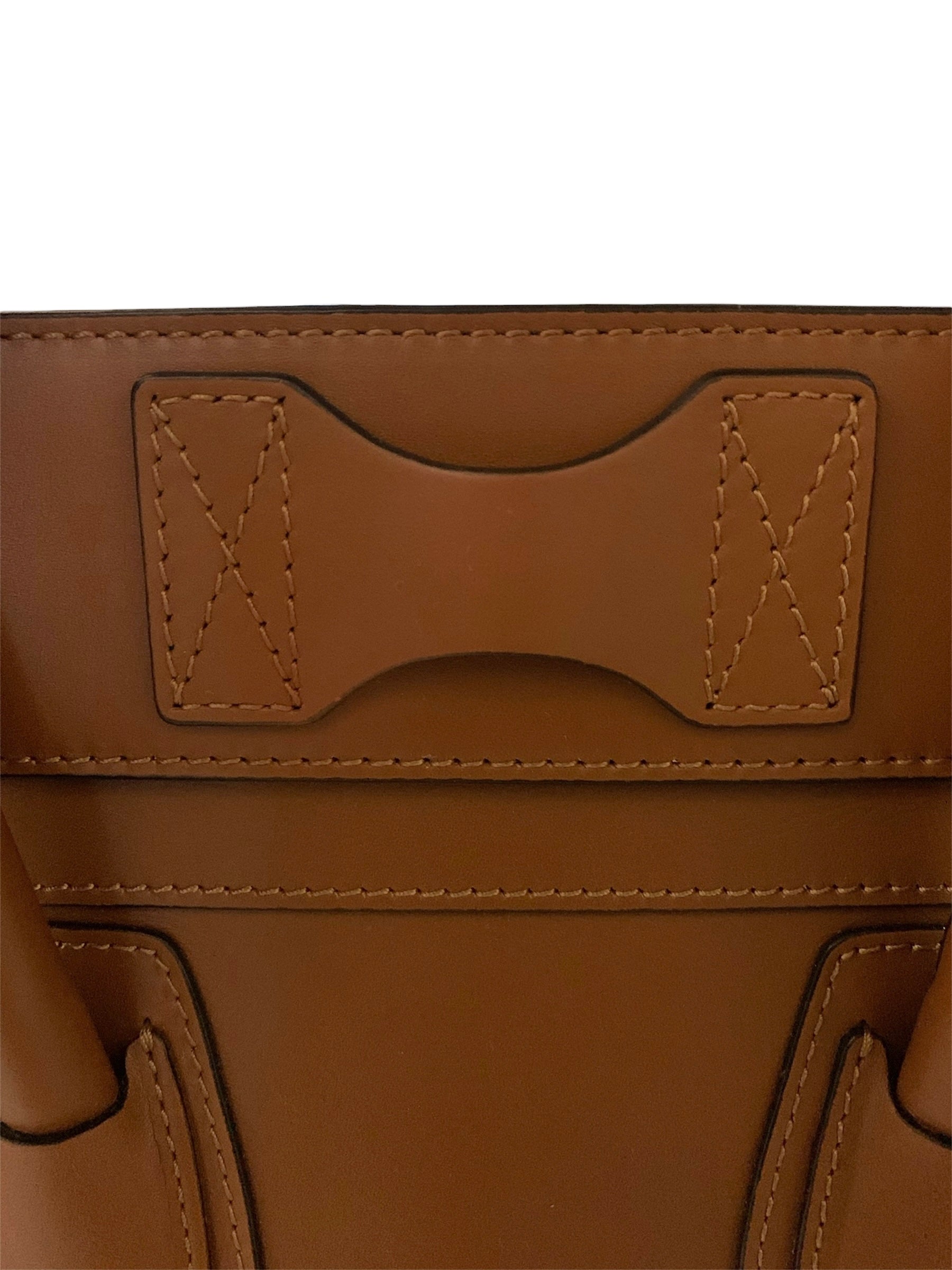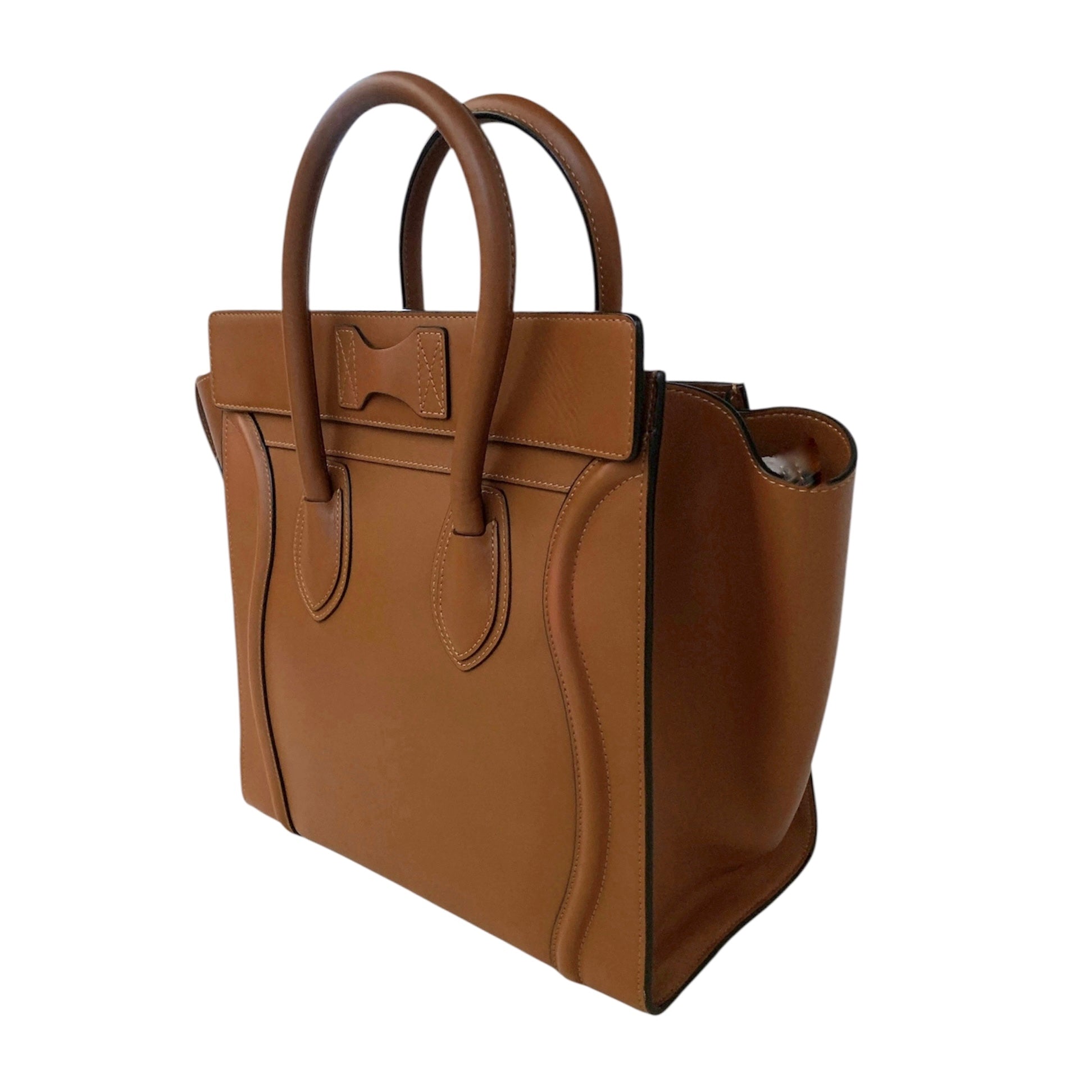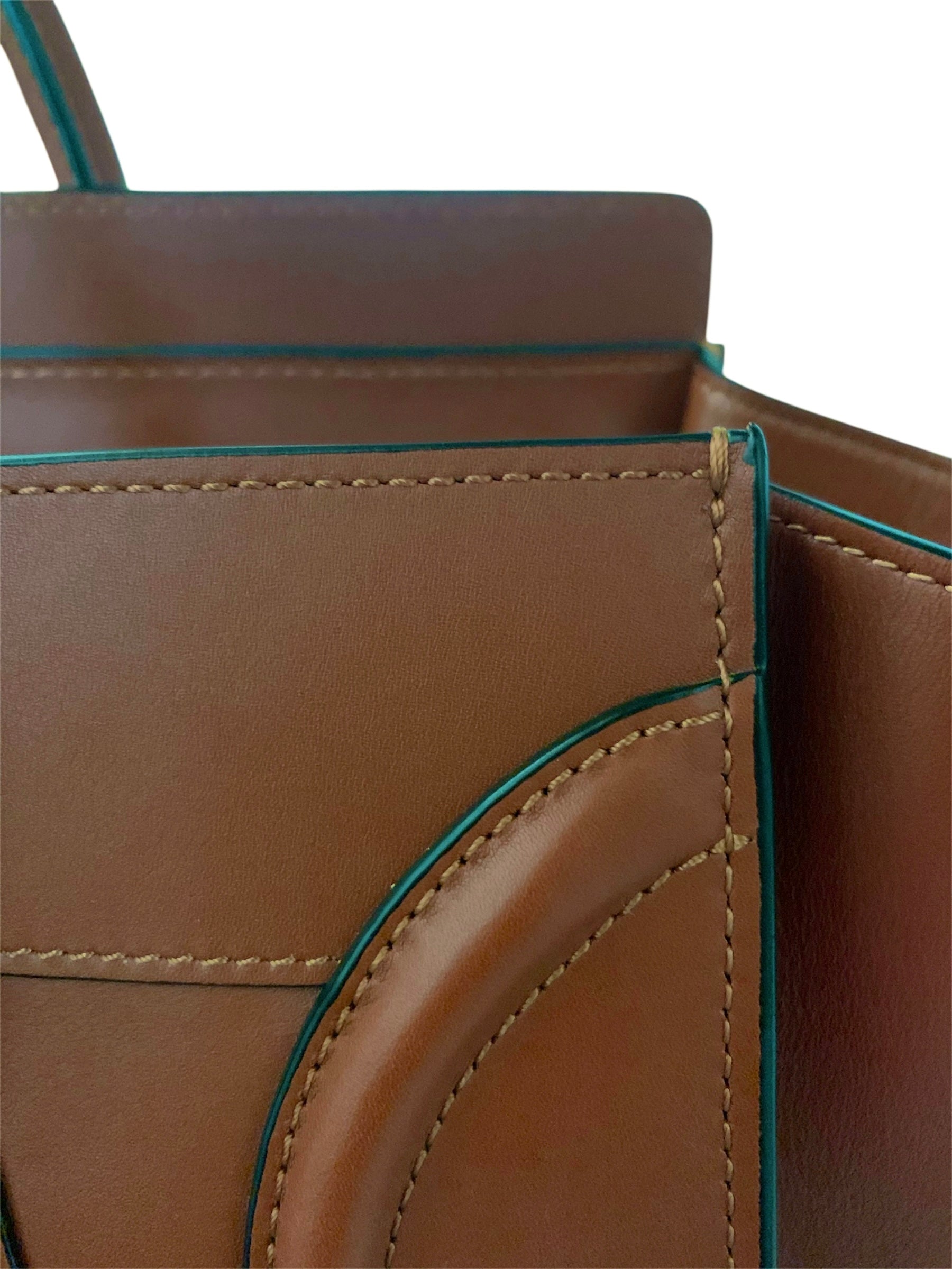 Design iconico della borsa Luggage introdotta per la prima volta nelle collezioni di Céline nel 2010 da Phoebe Philo. Il design inconfondibile combina un look semplice ed elegante con la massima funzionalità e spazio di archiviazione. Caratterizzato da maniglie superiori, tasca frontale con zip ed interno spazioso con zip e scomparti multipli.