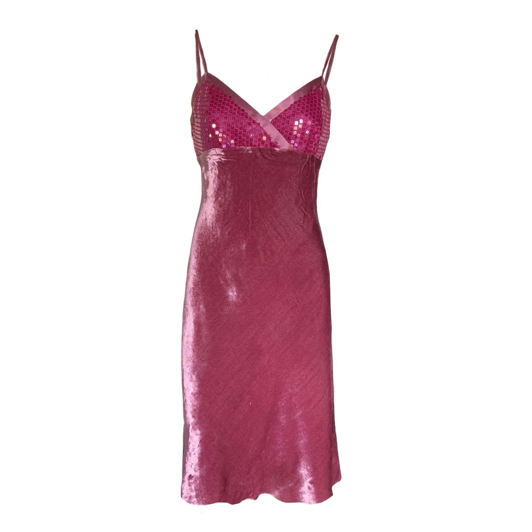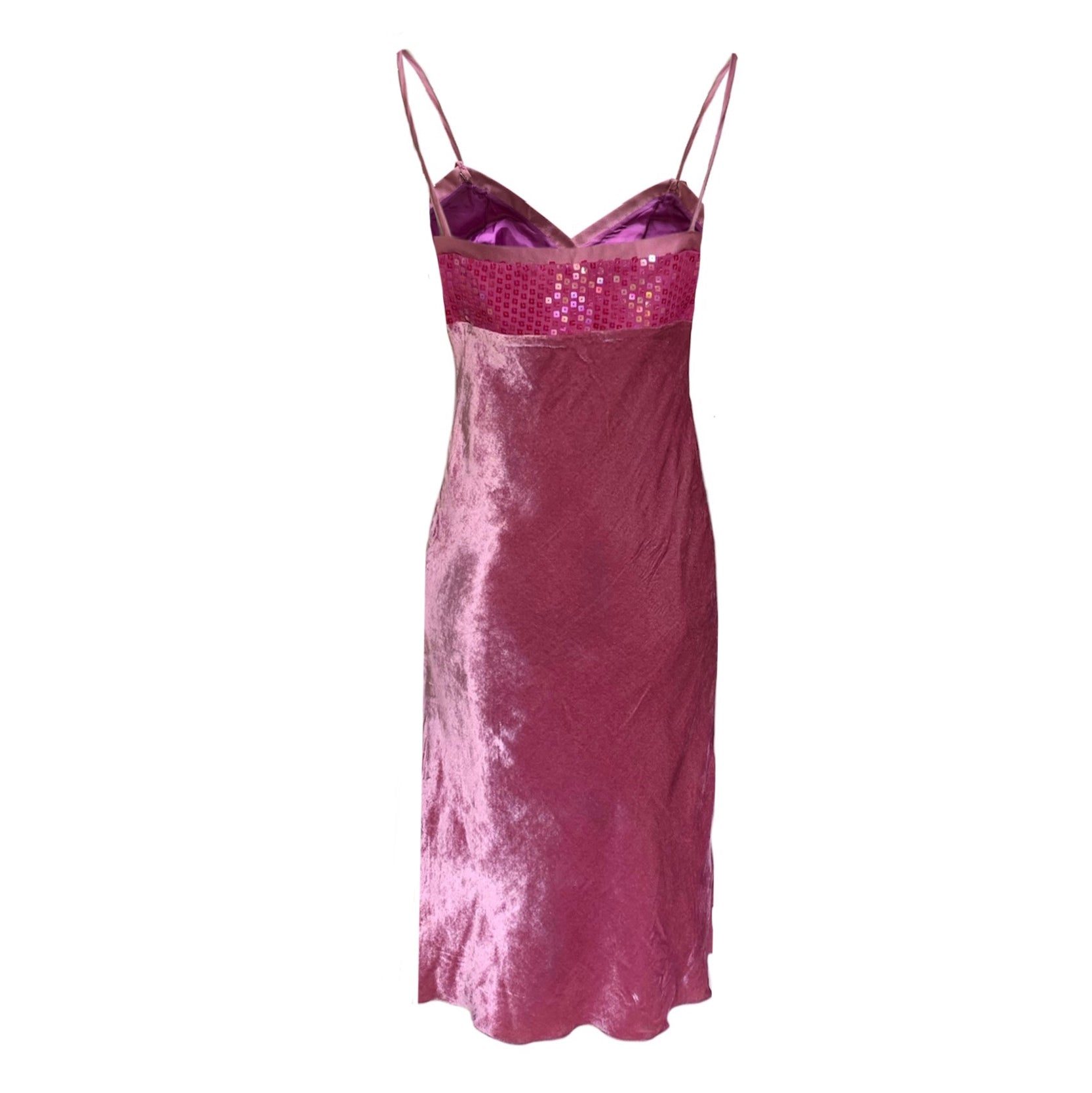 Abito midi in viscosa e seta con corpetto a V decorato con paillettes tono su tono. Zip laterale. Foderato (100% cupro).