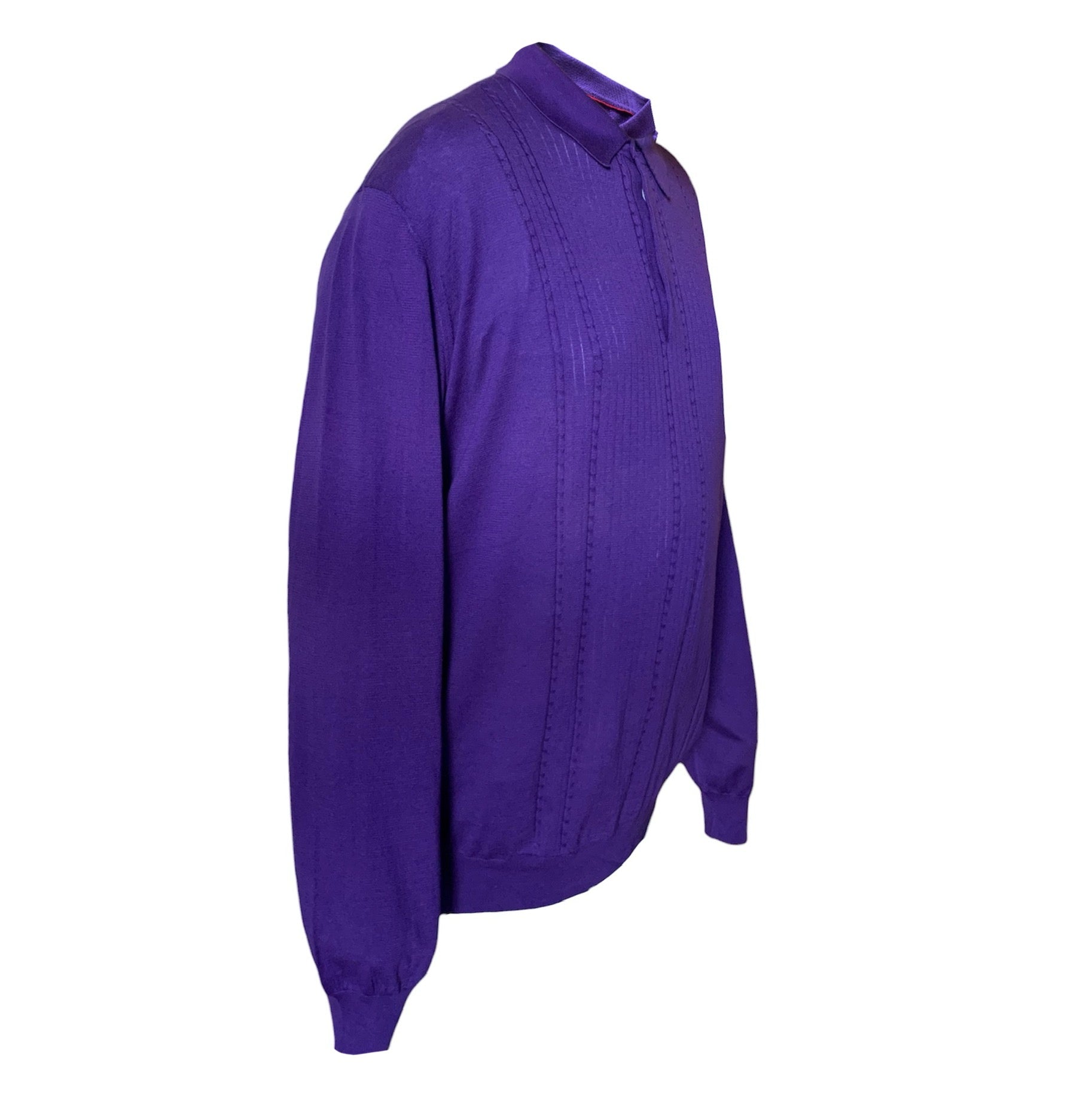 Maglione in cotone con collo classico e maniche lunghe, profili a costine, peso leggero. Allaccio a bottoni.
