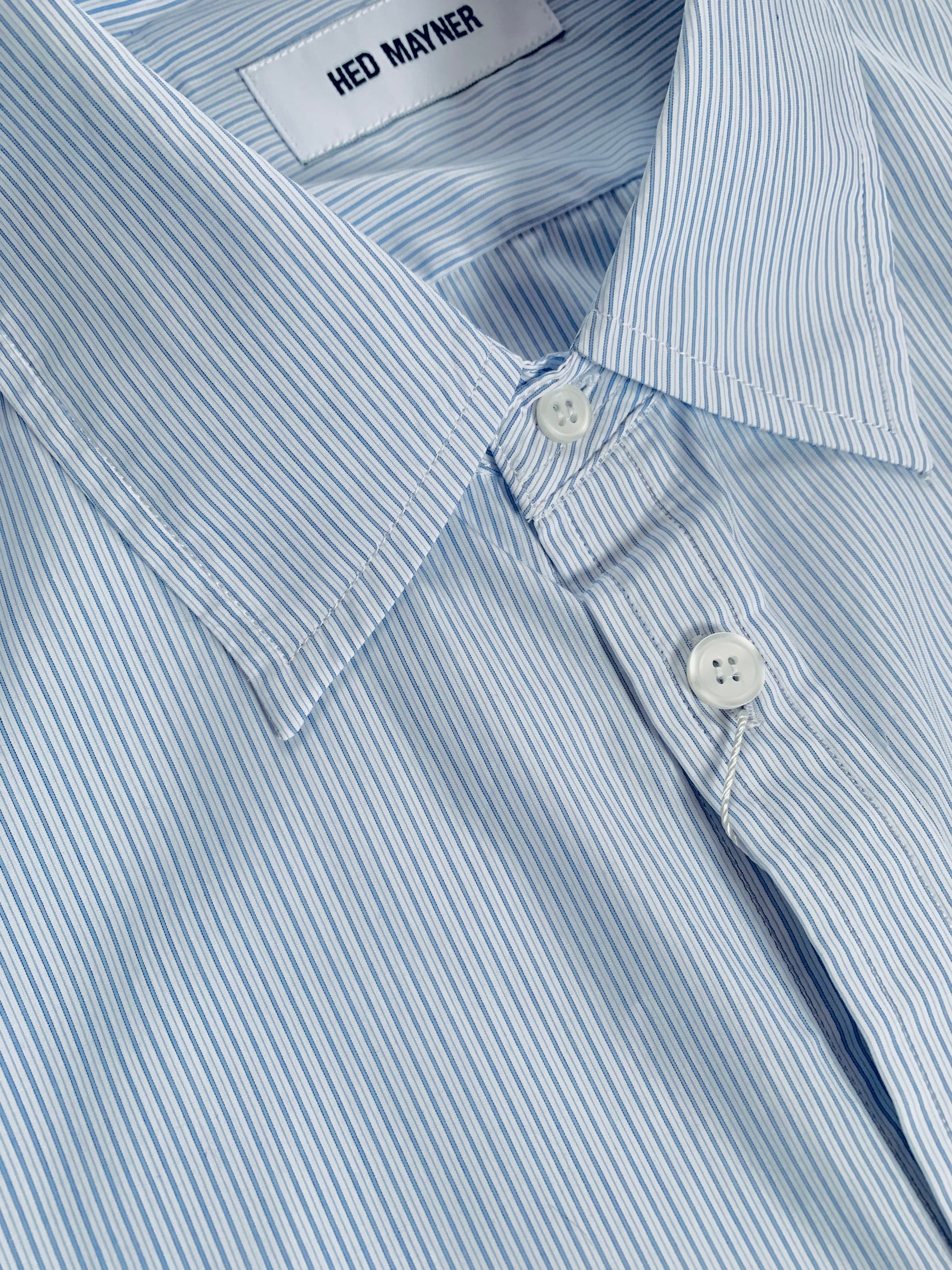 Camicia a righe dalla vestibilità oversize con abbottonatura frontale, colletto classico e polsini con bottone. Orlo curvo.