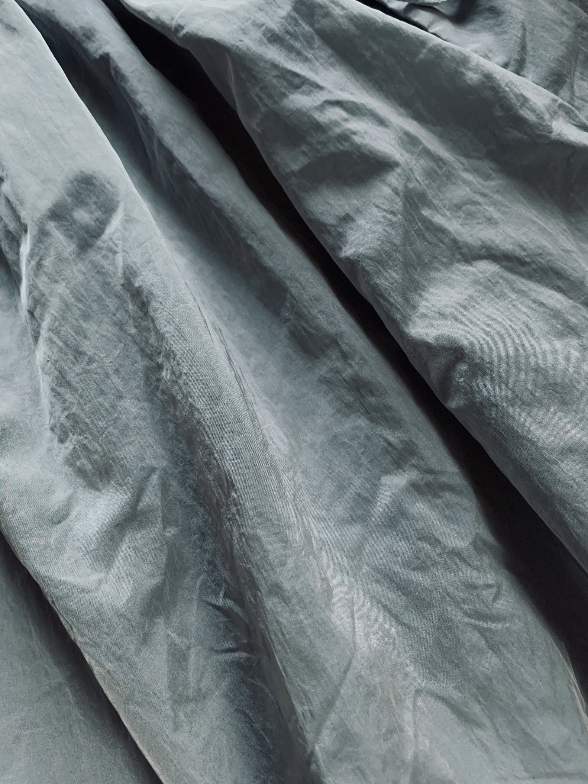Pantaloni in taffetà di nylon stile Judo con coulisse in vita e su fondo gamba. Stile a due tasche. Button-fly.