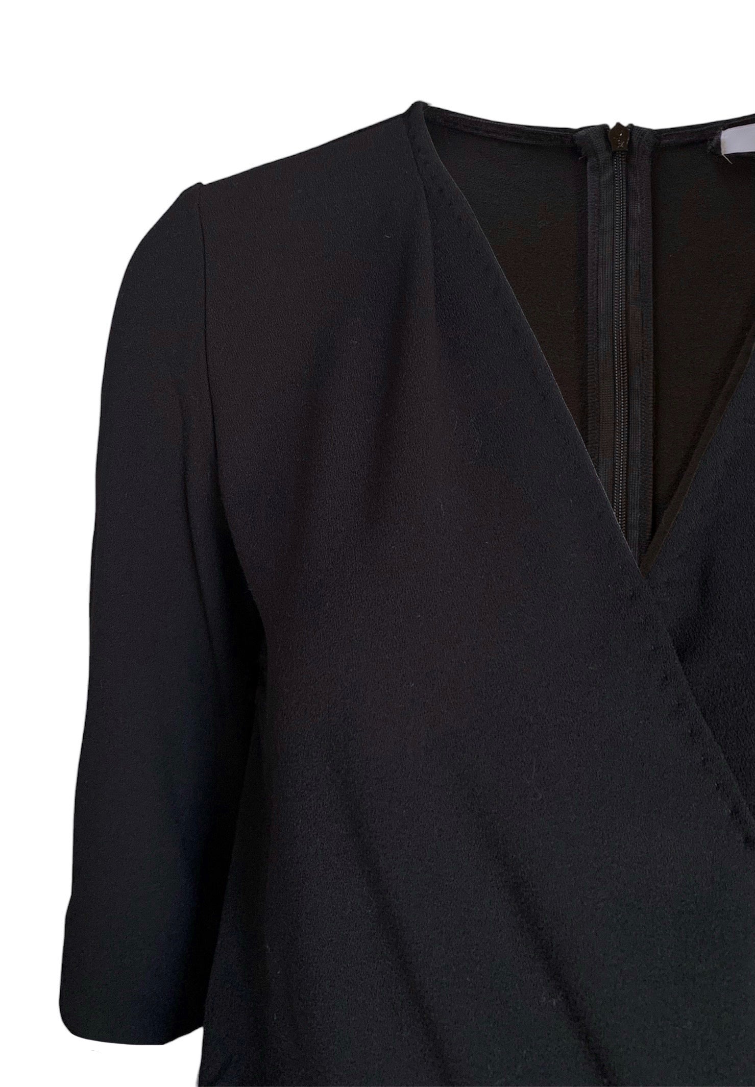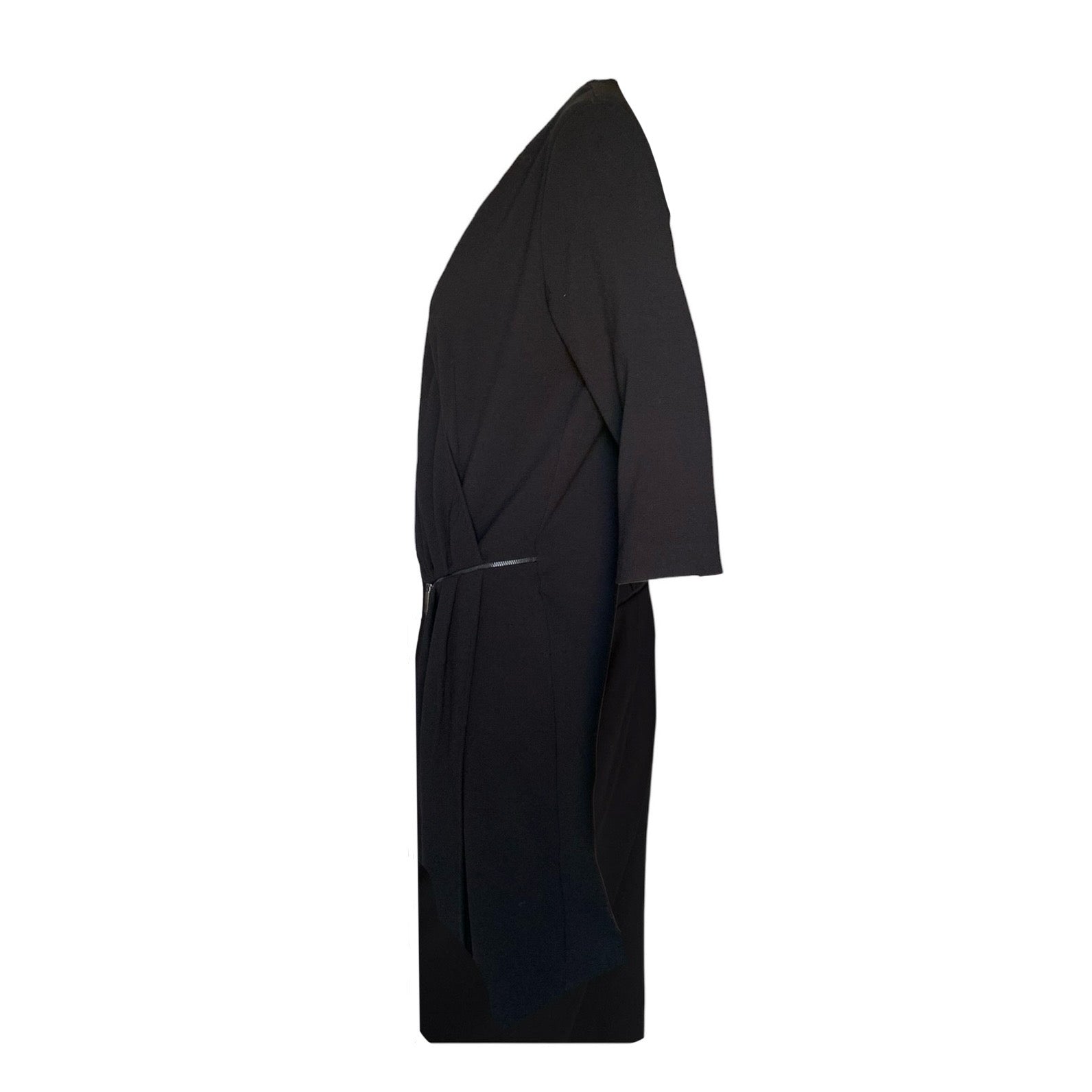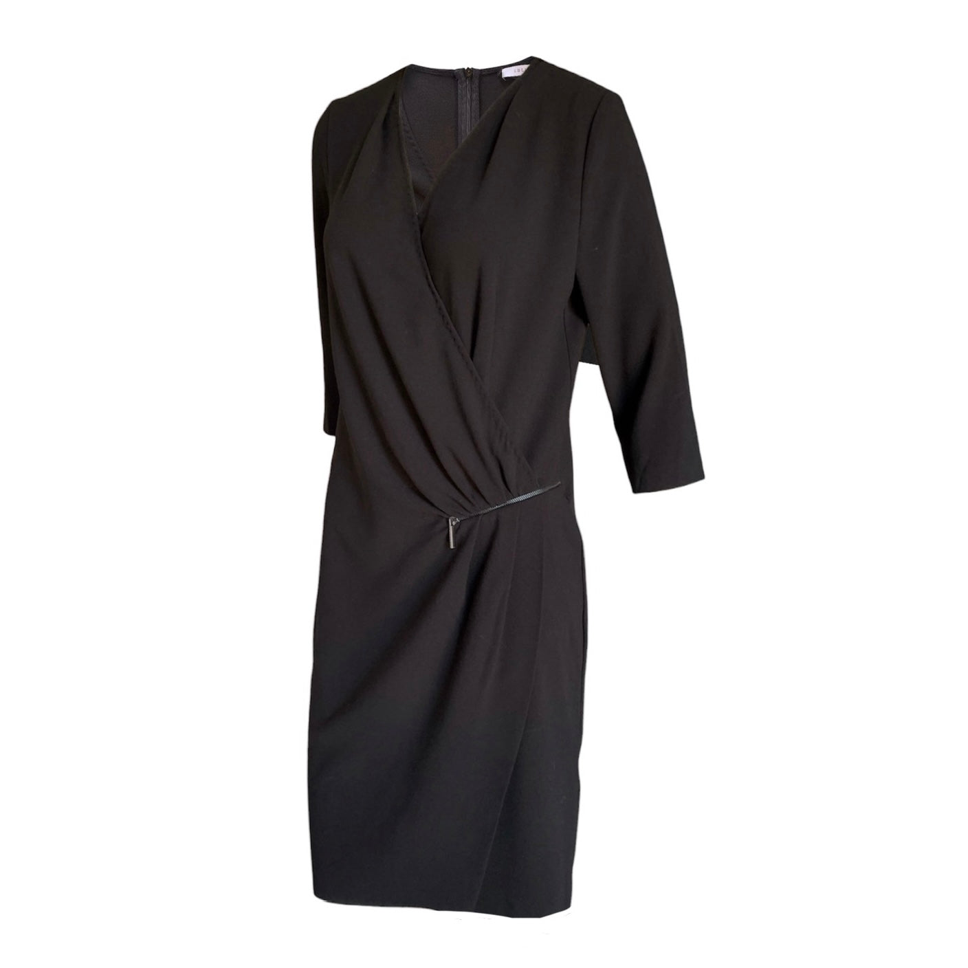 Abito midi con maniche a 3/4 e scollo incrociato a V, cerniera decorativa su un lato con pieghe, zip posteriore.
