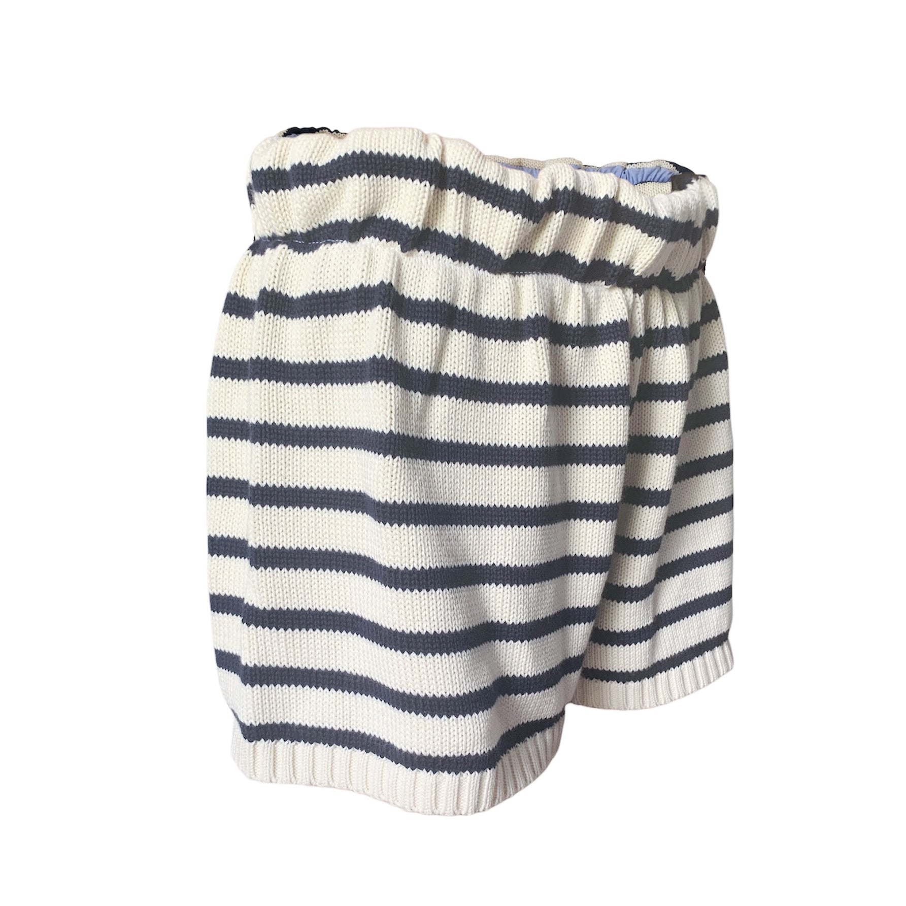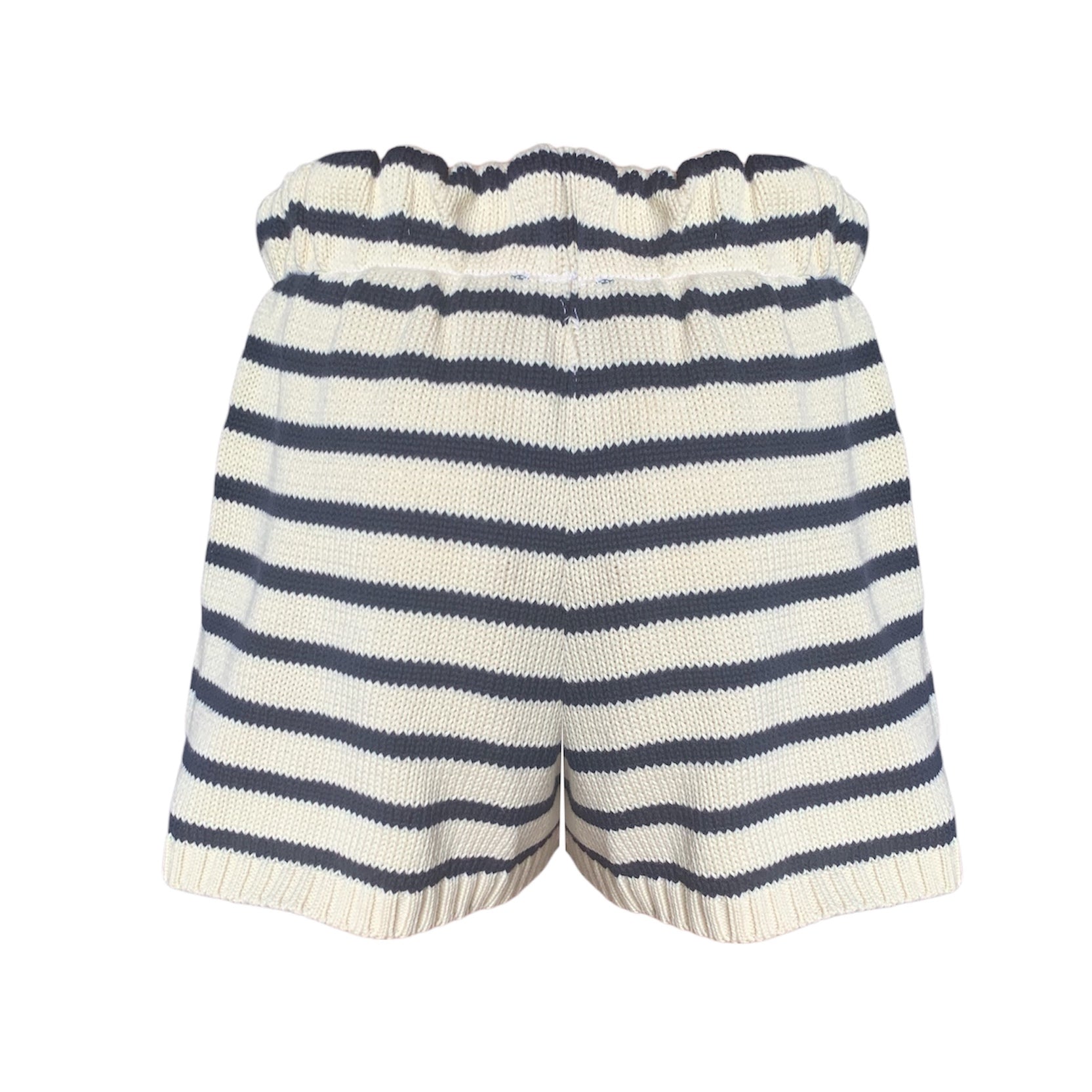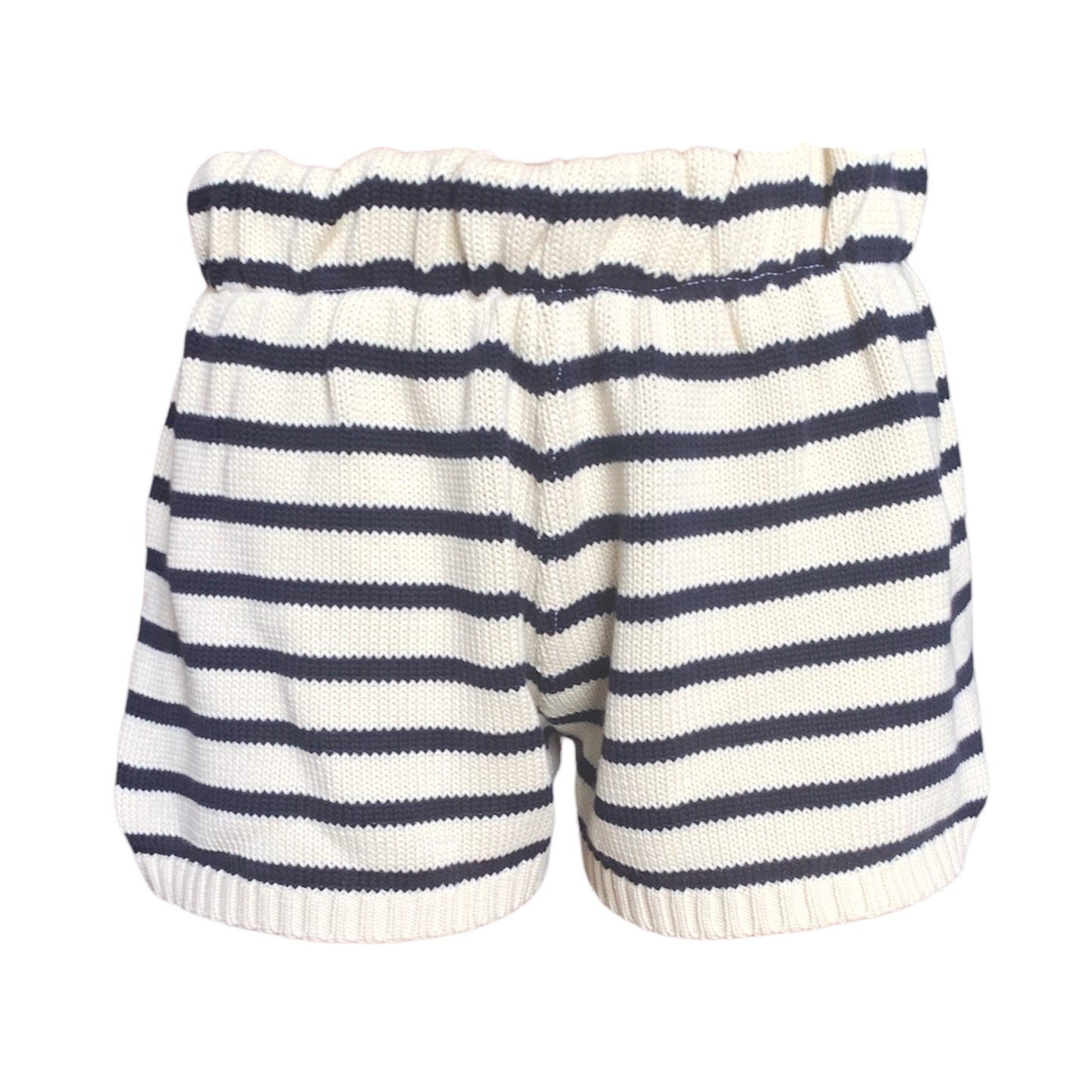 Pantaloncini in maglia a righe 100% cotone con elastico in vita. Parzialmente foderati.