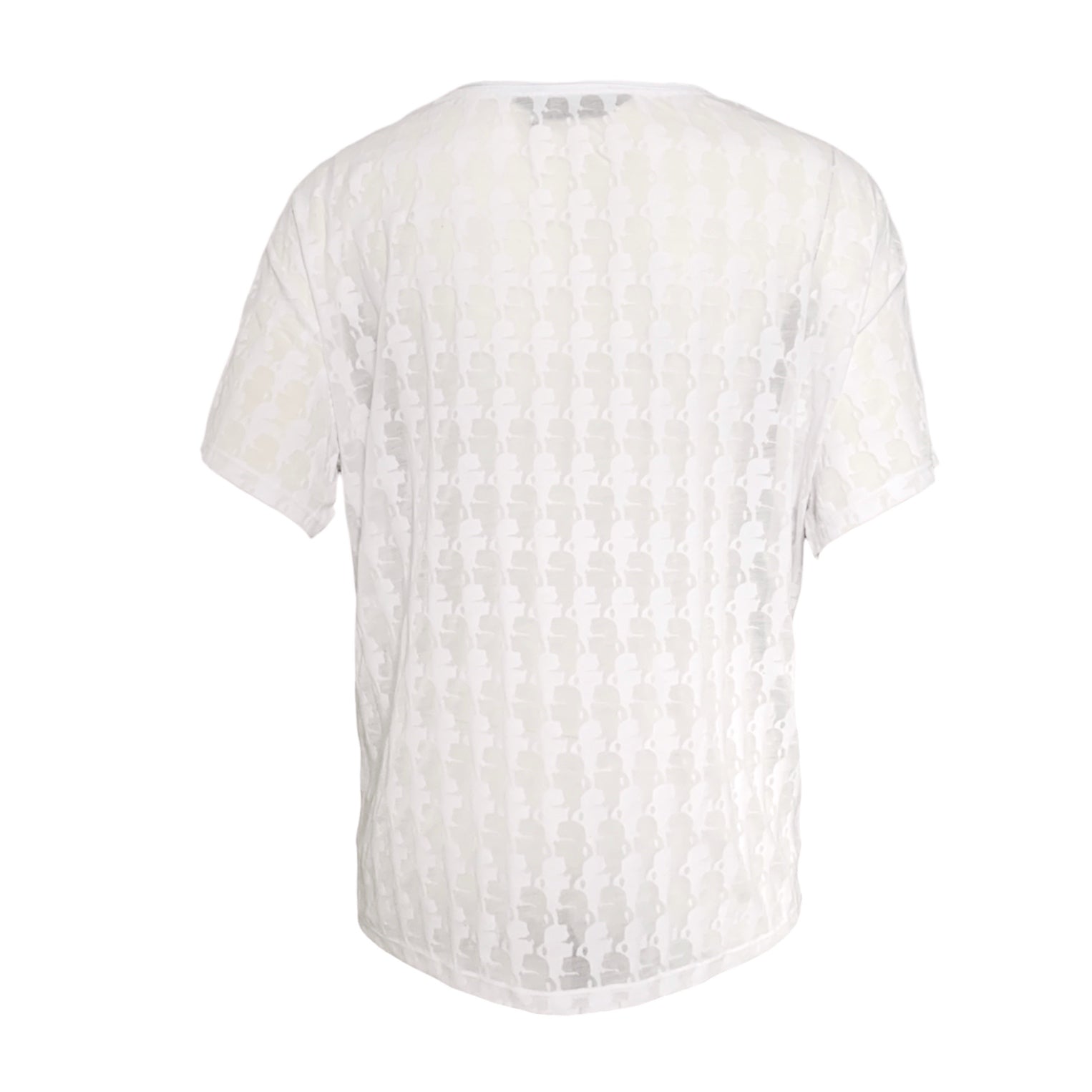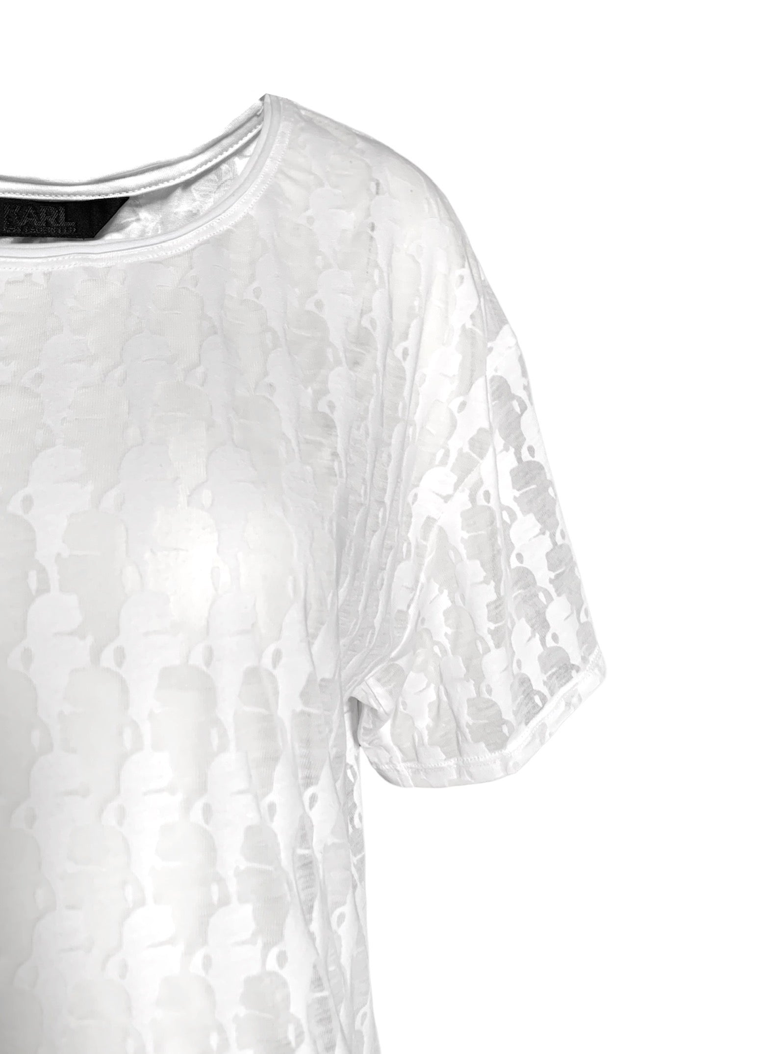 T-shirt a maniche corte e scollo tondo con raffigurazione del profilo di Karl Lagerfeld all-over su fondo trasparente. Vestibilità oversize.