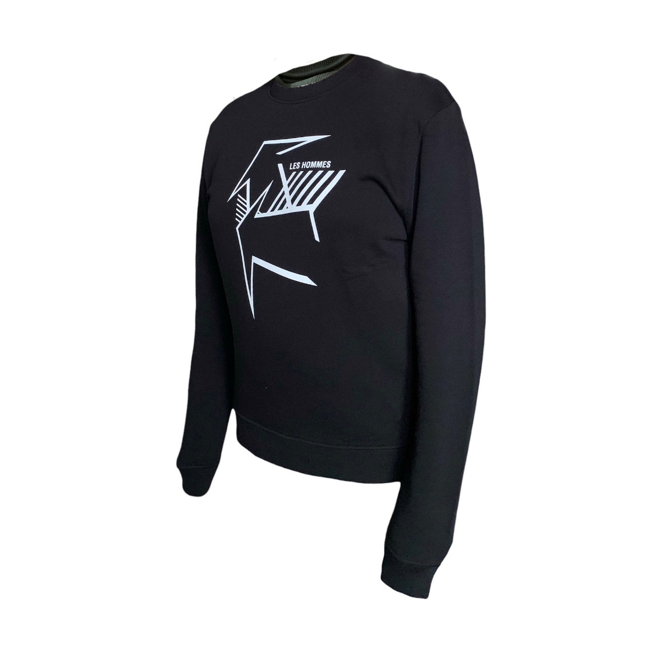 Felpa a girocollo con stampa a contrasto sul fronte, fondo manica e fondo a coste.