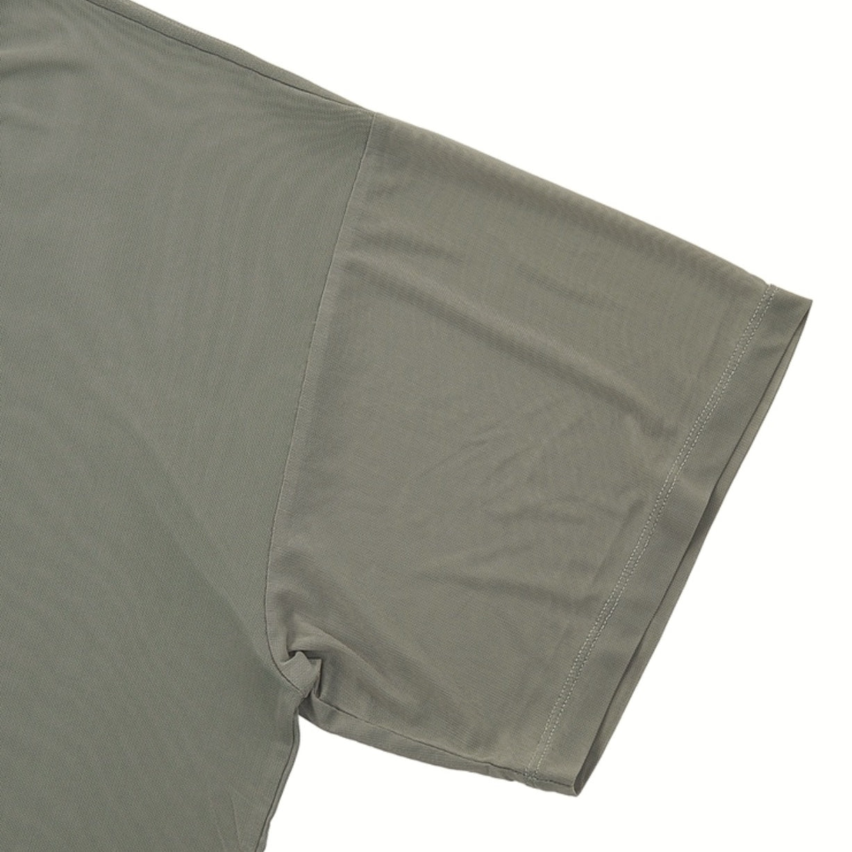T-shirt girocollo Pale Grey di MM6 Maison Margiela. Realizzata in rete elasticizzata, questo stile presenta una silhouette oversize, maniche corte e un logo grigio stampato sul davanti.