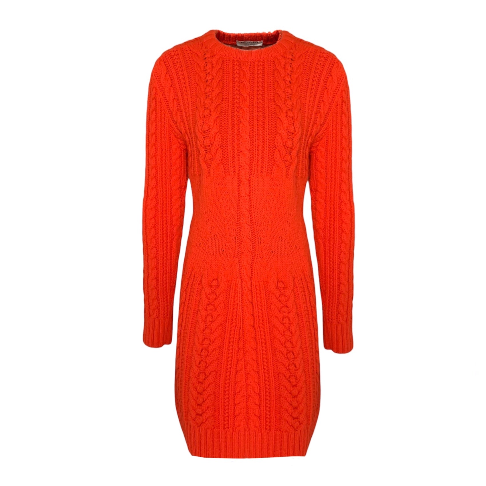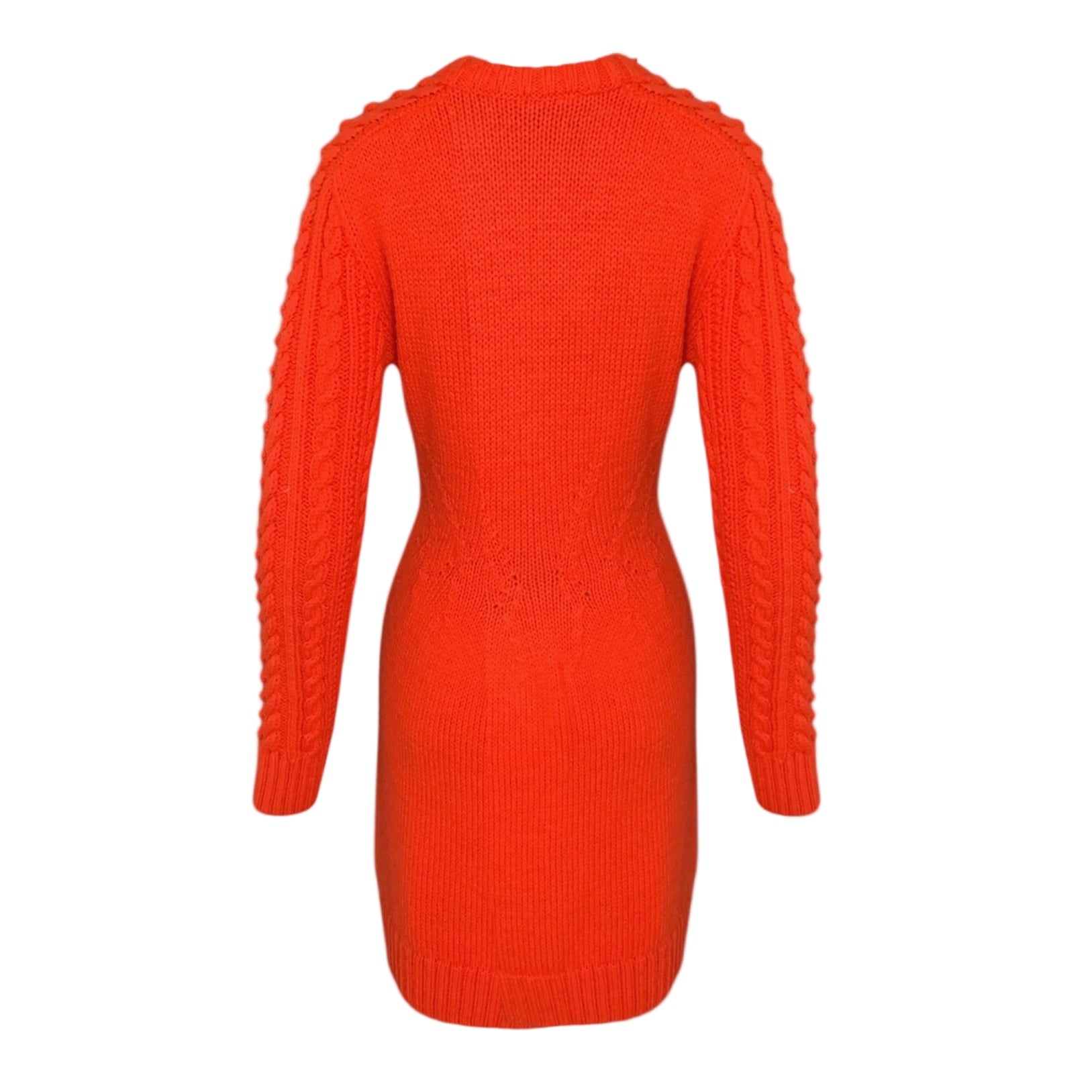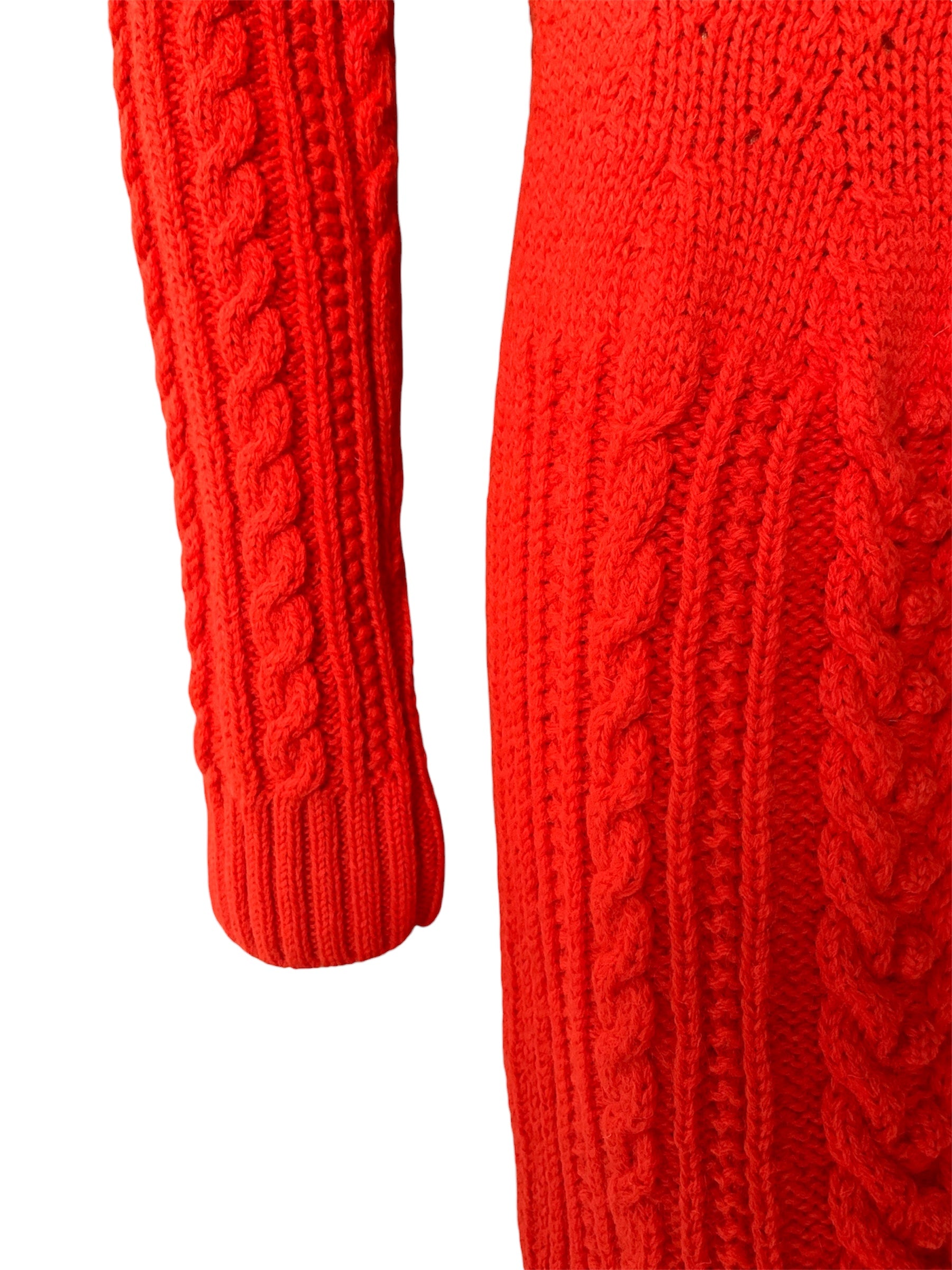 Abito in maglia a trecce con scollo tondo, maniche lunghe, lunghezza midi. Foderato.