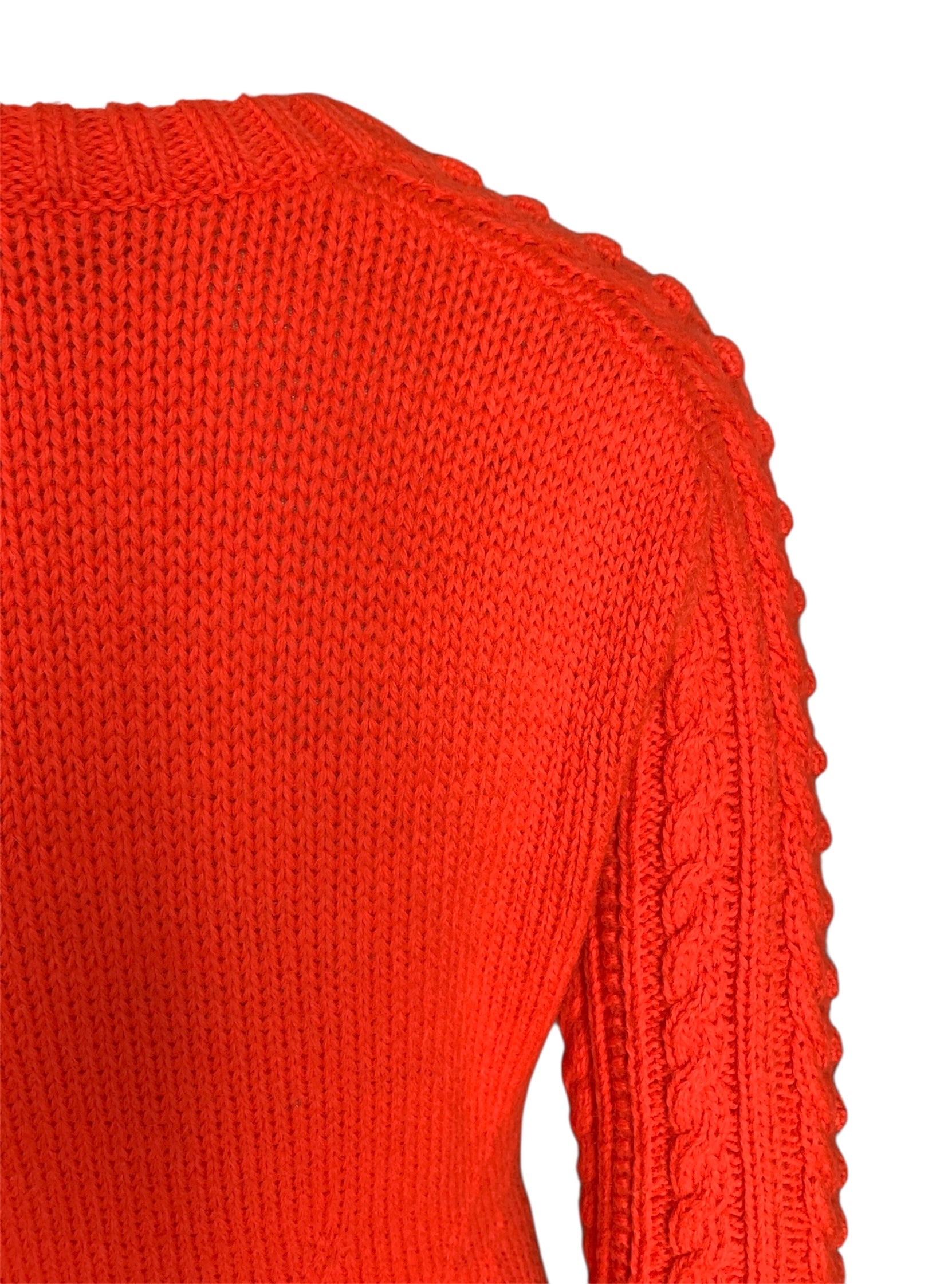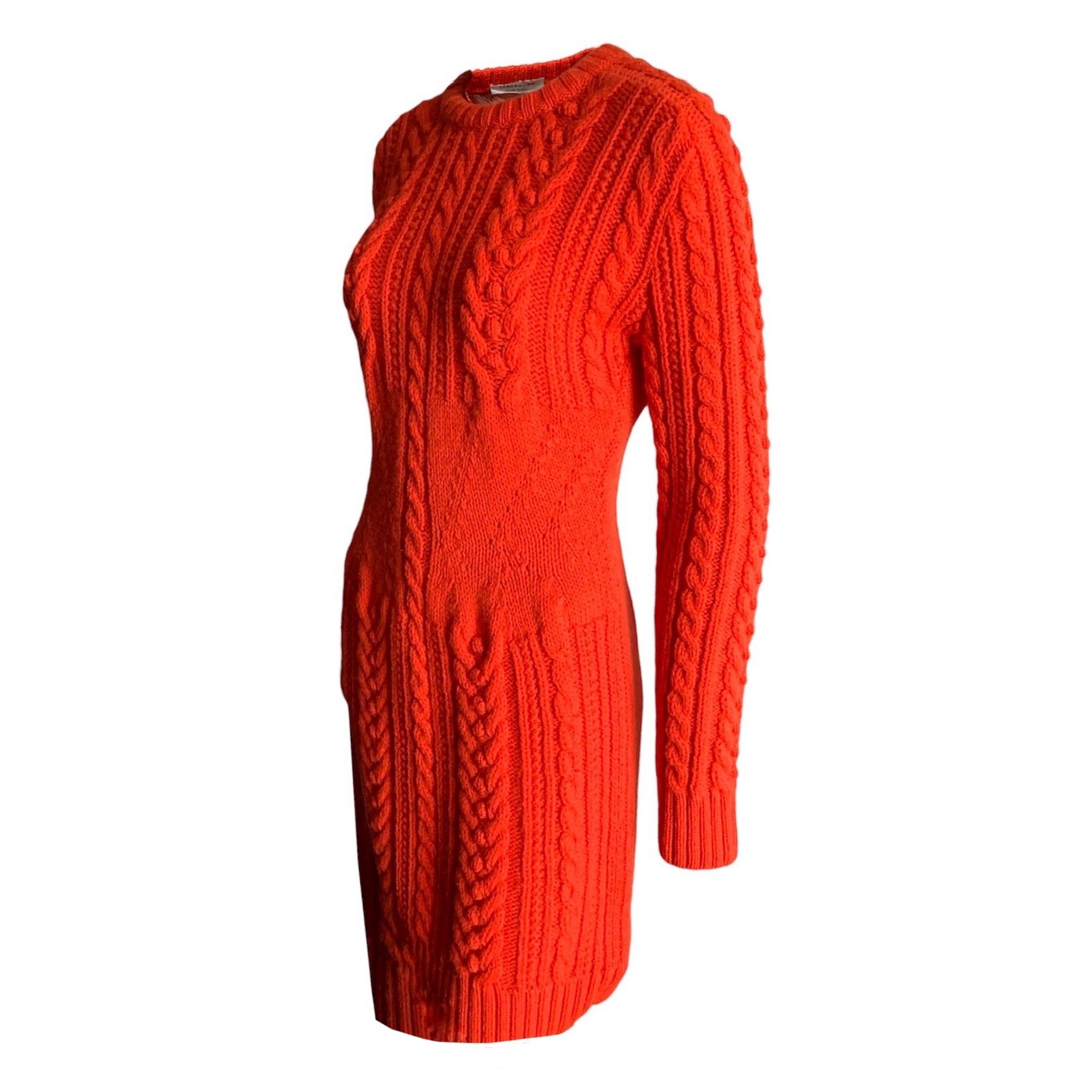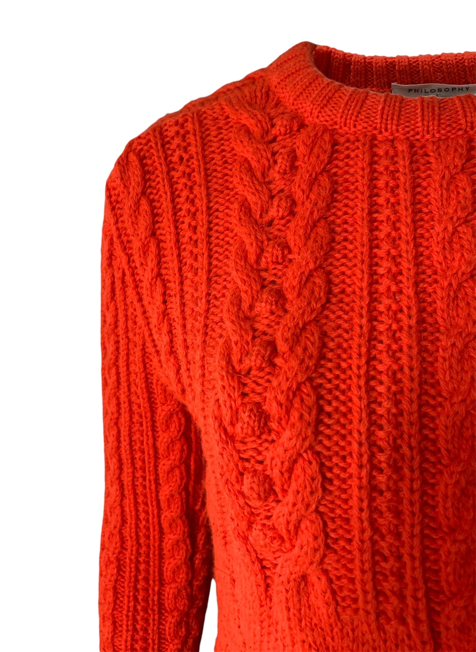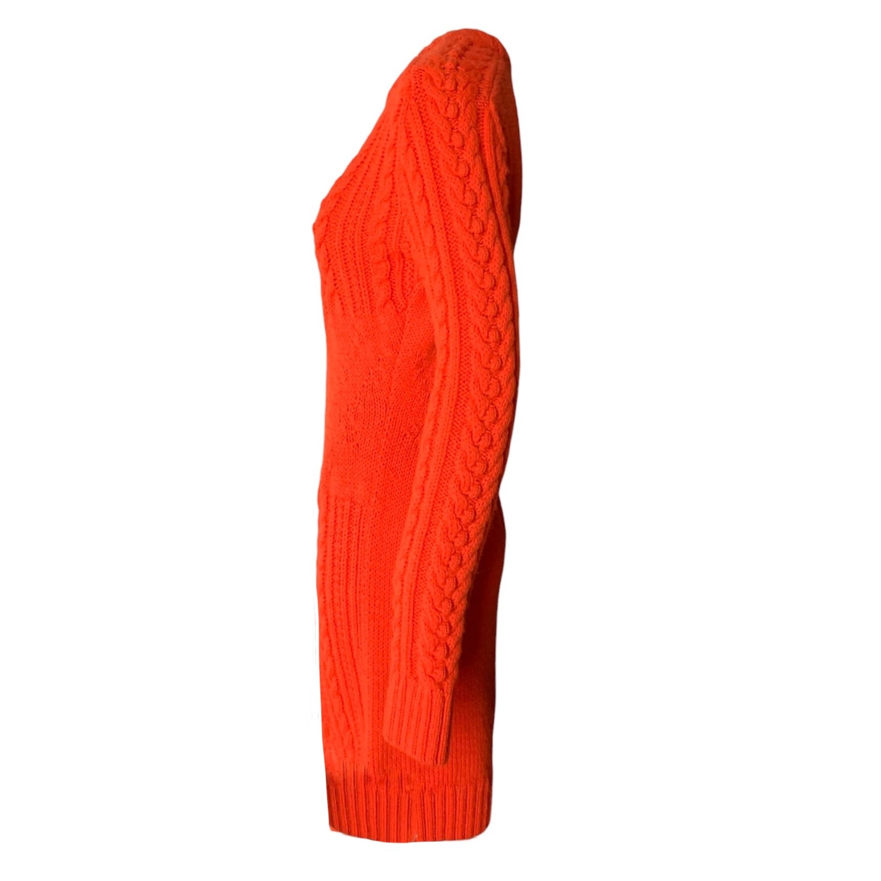 Abito in maglia a trecce con scollo tondo, maniche lunghe, lunghezza midi. Foderato.